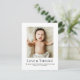 Share your joy with this Love and Thanks Baby Photo Birth Announcement and thank you card featuring one cherished photo, your baby’s name, and a customizable heartfelt message—perfect for announcing your little one’s arrival and expressing gratitude.