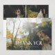 Minimalistic Modern 3-Photo Wedding Thank You Card. Personalize this elegant and simplistic wedding thank you card with three of your favorite wedding photos, bride and groom names, your wedding date, and your custom thank you message on the back.