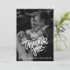 The typography features a bold, playful "thank you" script in crisp white, topped with a charming hand-drawn heart. Below this focal point, you can easily personalize the card with the names of the couple and your wedding date in a clean, professional sans-serif font. The high-contrast white lettering against your chosen photo creates a contemporary and joyful aesthetic that guests will love to display.