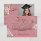 Carte De Remerciements Modern Pink Roses Script Graduation Photo