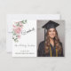 Carte De Remerciements Modern Pink Roses Script Graduation Photo