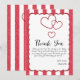 Carte De Remerciements Modern Red Chalk Stripes Triple Hearts Baby Shower