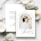 Minimalist wedding thank you card features modern script and chic arch frame with couple's photo in black and white, elegant and simple, great for modern classy wedding.