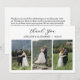Show your appreciation with our Modern Script Photo Wedding Thank You Card, a personalized and stylish way to thank your guests after your wedding day. Featuring a clean, modern script “Thank You” on the front, this elegant wedding thank you card highlights your favorite couple photo, along with your names and wedding date for a meaningful, custom touch. The back of the card includes a heartfelt wedding thank you message to your guests, paired with an additional couple photo, creating a beautiful keepsake they’ll treasure. Perfect for thanking guests for attending your wedding and for their thoughtful gifts, this personalized photo wedding thank you card combines modern design, simplicity, and timeless elegance. Ideal for couples seeking custom wedding thank you cards, photo wedding stationery, or modern wedding stationery, this design is perfect for newlyweds who want a polished and memorable way to express their gratitude.