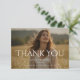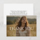 Share your appreciation with this modern graduation thank you photo card. The design features elegant typography with a large “THANK YOU” message placed over a beautiful full-photo background. The clean and refined lettering creates a sophisticated look while allowing the graduate’s photo to remain the main focus.