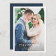 A trendy and modern design with a lovely personalized photo of the newlyweds in white borders. You can personalize the image, text and message at the back.