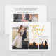 Une façon géniale et réfléchie de remercier vos amis, votre famille et vos collègues qui vous ont honoré leur présence sur votre jour de mariage avec cette photo moderne, cartes de remerciement avec écriture manuscrite effet or "merci". Photos à l'avant et à l'arrière de cette carte