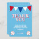 Carte de remerciement d'anniversaire de baseball mignonne pour les enfants pour remercier leurs amis et leur famille. Carte de remerciement simple pour les enfants - un garçon et une fille. La carte a un thème de baseball - deux balles de baseball et des drapeaux de guidon rouges, bleus et blancs. Le fond est bleu. Personnalisez la carte avec le nom de l'enfant. Vous pouvez également modifier le message de remerciement et écrire le vôtre si vous le souhaitez.