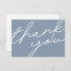 Carte de remerciements minimal moderne en bleu et blanc Dusty avec script de calligraphie. Customisez-le avec votre propre message au verso ou supprimez le texte au verso et ajoutez une note manuscrite.