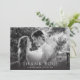 Avec deux photos personnelles et un message sincère, cette carte de remerciement contemporaine en noir et blanc mariage est une façon élégante de montrer votre appréciation. Son design simple et imaginatif en fait une option abordable mais sophistiquée pour les couples à la recherche d'un souvenir classique. Créez une carte unique qui capture précisément votre histoire d'amour en la personnalisant avec vos photos et texte.