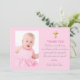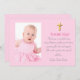 Moderne, élégant, photo, baptême, petite fille, rose et or, croix, Cartes de remerciements.