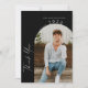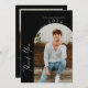 Une carte de graduation Merci qui comprend un script de calligraphie manuscrit moderne et tendance avec espace pour insérer votre photo de choix. Il a la possibilité de personnaliser facilement avec votre propre message, nom et détails. Une façon réfléchie et mémorable d'express votre gratitude à la famille et aux amis, mentors et professeurs.