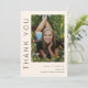 Un carte de remerciements de graduation photo moderne, simple mais élégant, avec une photo verticale de deuxième cycle et un titre personnalisable. Ajoutez le nom du diplômé et de l'école. Un message personnalisé sur le dos rend une note de remerciement sincère.