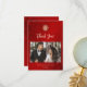 Ce carte de remerciements mariage chinois est doté d'un double panneau de bonheur doré et de mots "merci" dans un script manuscrit moderne sur un arrière - plan chatoyant rouge. Avec un message de remerciement personnalisé, votre photo et vos noms et date mariage.