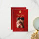 Ce carte de remerciements mariage chinois présente un double signe de bonheur artistique en or et des mots "merci" dans un script manuscrit moderne sur un arrière - plan chatoyant rouge. Avec un message de remerciement personnalisé, votre photo et vos noms et date mariage.