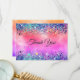 Carte de remerciements monogramme chic girly iridescente licorne parties scintillant. Carte de Noël chatoyante, mignonne et étincelante. Parfait pour envoyer en famille ou entre amis pour la saison des fêtes, les anniversaires ou toute autre occasion. Pour le rendre plus spécial il est embelli avec la belle fausse parties scintillant. Cette conception peut également être transférée sur n'importe quel produit sur zazzle. Vous pouvez le personnaliser avec votre propre texte et informations. VEUILLEZ NOTER : Il s'agit de graphiques imprimés plats - pas de parties scintillant réelle, de bijoux ou de pièces surélevées