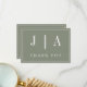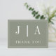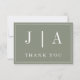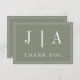 Carte De Remerciements Monogramme Moderne Simple Sage Vert Mariage blanc