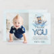 Personnalisez cette carte de remerciement photographique double face de l'anniversaire de Teddy Bear Nautical facilement et rapidement. Cliquez simplement sur le bouton Personnaliser pour modifier les textes, changer les polices et les couleurs de police. Avec un joli capitaine ours en peluche à la barre d'un petit bateau et un titre «merci».