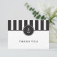 Carte de remerciements nautique de très bon goût comportant des rayures noires et blanches et une ancre moderne mignonne.