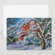 Reproduction charmante d'une peinture d'une maison rouge confortable et de neige fraîchement tombée — jolie carte plate pour Noël — ou toute l'année. Par la paysagiste L. Diane Johnson.