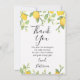 Recherche du carte de remerciements orienté de baby shower d'un agrume ou de citron ? Tout le texte dans la conception est editable ainsi le titre peut être changé pour adapter à vos besoins. Le citron de caractéristiques de conception s'embranche au dessus et à la base de la carte. C'est une manière fraîche et belle de remercier des invités de venir à votre baby shower. La même invitation de baby shower de conception est également disponible.