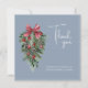 Noël Dusty Blue Winter Festive Mariage Carte de remerciements - Élégant Foliage dans les teintes À feuillage persistant rustiques. Découvrez l'enchantement de la saison grâce à notre carte de remerciements de Noël bleu poussiéreux et moderne, orné de couleurs riches et festives de rouge et de vert. Cette élégante carte de remerciements présente des accents feuillus délicats et des baies rouges qui évoquent la beauté du charme à feuillage persistant de l'hiver. Avec un mélange parfait de style moderne et de chaleur rustique, cette carte de remerciement donne le ton d'une joyeuse fête qui capture l'esprit de Noël. Partagez votre journée spéciale avec vos proches à travers ce carte de remerciements mariage enchanteur, où les tons rouges et verts insufflent à l'occasion la magie des vacances.