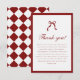 Carte de Remerciement de Remise de Diplôme Noeud Papillon Élégant à Carreaux. Une carte de remerciement de remise de diplôme classique et formelle, rouge vin et blanc, conçue avec un noeud, un motif à carreaux et des lettres calligraphiées. Personnalisez avec un message de remerciement personnalisé pour vos amis et votre famille.