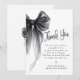 Partagez votre gratitude avec style grâce à ces cartes de remerciement de douche de mariée chic et douces « Elle noue le nœud », avec un nœud coquet noir saisissant et une écriture calligraphique moderne élégante. Parfaites pour une célébration de douche de mariée stylée, ces cartes ajoutent une touche à la mode et sophistiquée. Idéal pour les cartes de remerciement de douche de mariée, la décoration de douche de mariée coquette, la papeterie de mariée au nœud noir ou les thèmes de douche de mariée modernes.
