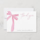 Montrez votre gratitude avec des Cartes de Remerciement personnalisées avec Nom et Ruban Rose pour Réception de mariage ! Avec un design élégant à ruban rose et un champ de nom modifiable, ces cartes élégantes sont le moyen idéal pour remercier vos invités avec style après avoir célébré la future mariée. Vous offrant de l'espace pour une note manuscrite.