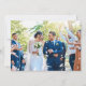 Carte de remerciement de mariage avec une bande de photos sur le devant et une photo en plein cadre, encadrée avec une police de caractères romantique et nostalgique. Le modèle affiche votre photo principale au format horizontal plein cadre, tandis que le devant se présente sous la forme d'une bande de 3 photos carrées. "Merci" et "avec amour et gratitude" sont écrits en élégante police de caractères et vous pouvez personnaliser avec les noms des mariés, la date et le lieu du mariage, ainsi que votre message de remerciement. Veuillez parcourir ma collection de Cartes de remerciement photo de mariage pour des modèles alternatifs.