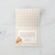Envoyez votre profonde gratitude avec ce charmant carte de remerciements plié We Can Bearly Wait baby shower. Doté d'un ours en peluche d'aquarelle confortable flottant dans un panier de ballons beige, d'un ours couché sur un nuage moelleux, de tons doux neutres et d'une bordure en vichy classique, ce design doux et neutre se marie parfaitement avec une célébration sur le thème de l'ours en peluche. Une façon intemporelle de remercier vos proches pour leur soutien et leurs cadeaux !