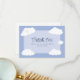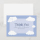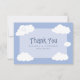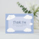 Carte de remerciement de célébration de mariage mignonne avec des nuages fantaisistes sur fond de ciel bleu avec les jeunes mariés sur le nuage neuf. Personnalisez les noms et la date de l'événement dans une police bleue élégante pour la rendre vôtre. Le dos de la carte est blanc croquant et parfait pour votre note de remerciement manuscrite personnalisée. La carte de remerciement amusante fait partie d'une collection de mariage décontractée unique et personnalisable. Ne manquez pas l'occasion - commandez la vôtre dès aujourd'hui !