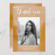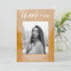 Carte de remerciements tendance de graduation avec la photo du diplômé avec un arrière - plan d'aquarelle ocre. "Merci" s'affiche dans un script blanc écrit à la main. Personnalisez le devant de la carte de remerciements de graduation en ajoutant le nom du diplômé, le nom de l'école et l'année de graduation. L'arrière dispose d'espace pour votre message dactylographié ou manuscrit.