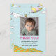 Un grand merci pour les endroits où ils sont allés, et pour une fête d'anniversaire si merveilleusement passée ! Cette carte fantaisiste capte l'esprit d'aventure avec un design charmant inspiré du livre classique du Dr Seuss, "Oh, the Places You'll Go !" C'est la façon parfaite de partager la gratitude pour tous les merveilleux cadeaux et l'amour reçus, alors que votre petit se lance dans leur prochain grand voyage. Avec de l'espace pour ajouter une photo chère, c'est un doux souvenir d'une journée vraiment spéciale.