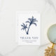 Carte De Remerciements Palm Tree Tropical Beach Marine Mariage bleu