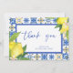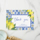 Carte De Remerciements Panneau Fête des mariées Citrons de Carreaux Bleus