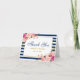 Carte De Remerciements Papier Aquarelle Floral Rose Bleu Rayures Note de