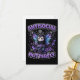 Un papillon lunatique portant des écouteurs est perché sur un crâne lumineux et fait défiler un téléphone au milieu de fleurs sombres dans un style gothique fantaisiste.