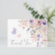 Carte De Remerciements Papillon Rougeoyant Fleur Sauvage Rose Violet
