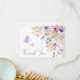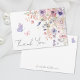 Cette carte de remerciement plate est conçue pour correspondre au thème doux et fantaisiste « Un petit papillon est en route ». Le devant présente des fleurs sauvages et de la verdure à l'aquarelle douce, avec des papillons roses et violets voltigeant autour des mots « Merci » dans une calligraphie manuscrite élégante. La palette de couleurs douces de roses blush, rose poussiéreux, lilas, lavande, violet et verts frais ajoute une touche douce et charmante.