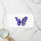 Bijoux, bleu, saphir, papillon aux fleurs pétillantes avec aile décorée de bleu, fleurs précieuses avec feuilles d'or sur arrière - plan blanc.
