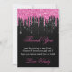 Carte De Remerciements Parties scintillant à goutte noire et rose Douce 1