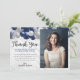Glam Moderne Marine Bleu Silver Gris Balloon Parties scintillant Étincelle N'importe quel âge Photo Merci Carte d'anniversaire