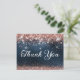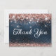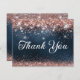 Créez vos propres cartes de remerciement élégantes avec cette parties scintillant d'or rose brillant et brillant rose diamant strass confetti contre un arrière - plan métallique sombre ou dégradé bleu marine. Ce métal bleu marine en or rose faux brillant sera parfait pour un cadeau personnalisé.