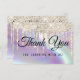 Carte de remerciements élégant pour votre petite entreprise. Cette conception est faite de parties scintillant diamant goutte sur un arrière - plan holographique perlé. Idéal pour les entreprises de beauté. Veuillez noter que les éléments de parties scintillant et d'holographie sont simulés.