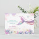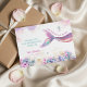 Inspired by shimmering shores and soft underwater hues, this mermaid design blends blush pink, lavender mist, and aqua tones with delicate gold sparkle accents. The flowing rainbow tail and seaside florals create a sweet, magical way to send gratitude after a beautiful under-the-sea celebration.
