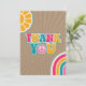 Thème de baby shower super avec signe de paix intégré dans le texte "Merci" avec texte personnalisé pour le nom. Sunshine en haut à gauche et arc-en-ciel à droite sur cardstock inspiré sunburst arrière - plan.