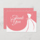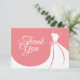 Une carte de remerciements nuptiale chic avec une robe de mariée élégante sur un arrière - plan rose pêche avec un magnifique script blanc merci texte. Vous pouvez customiser la couleur de l'arrière - plan pour la coordonner avec votre thème mariage.