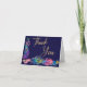 Peacock Feathers & Fleurs Quinceañera Carte de remerciements! Belle et élégante Quinceañera, cartes de remerciement mises contre un arrière - plan violet foncé. Cette plumes de paon et son design floral de violet, bleu, vert et rose est l'accompagnement parfait de la Quinceañera Party de votre fille. Une excellente façon de remercier les invités qui ont assisté à votre occasion spéciale. Parfait pour ceux qui aiment les plumes de paon et les fleurs.