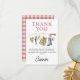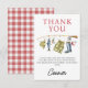 Vintage Fishing Rod O-Fish-Ally 1er anniversaire Carte de remerciements mignonne garçon's pêche carte de remerciements d'anniversaire avec une canne de pêche avec bottes de pêche, poisson, leurres, bobber, casquette de pêche et veste de pêche. Ce carte de remerciements d'anniversaire à thème traditionnel comporte également un motif en vichy rouge et blanc sur le dos.